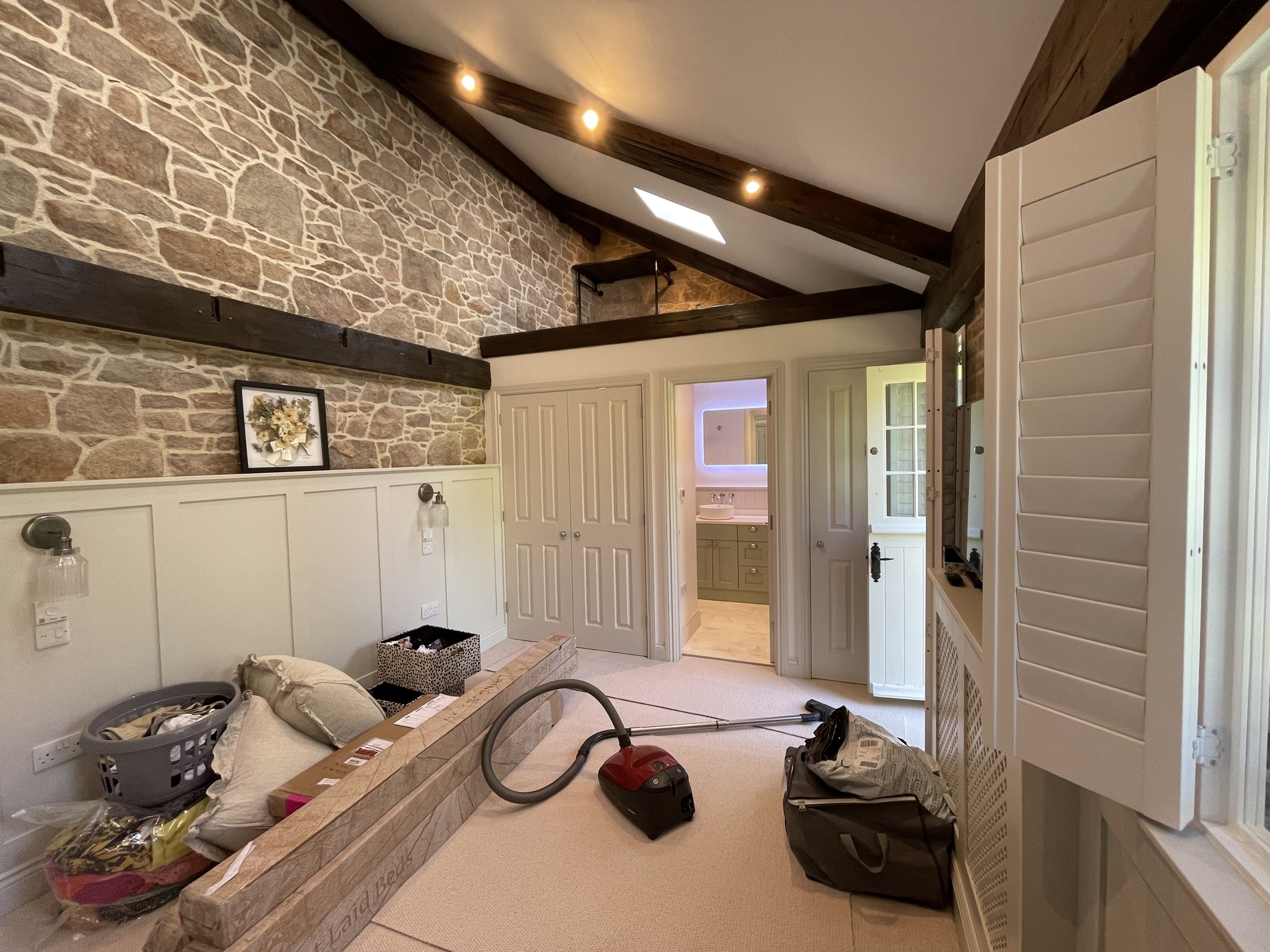 A challenging conversion from a trussed roof space into a master bedroom and en-suite bathroom.
