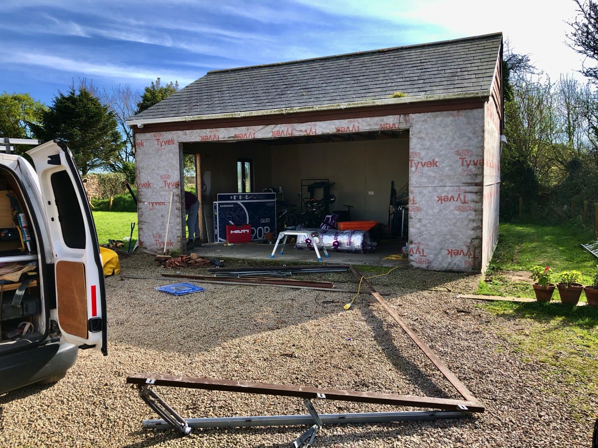Conversion of an unused old detached double garage, to a summer space the whole family can enjoy.