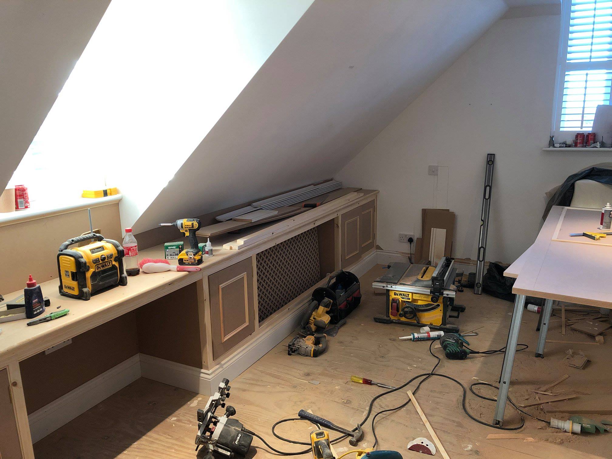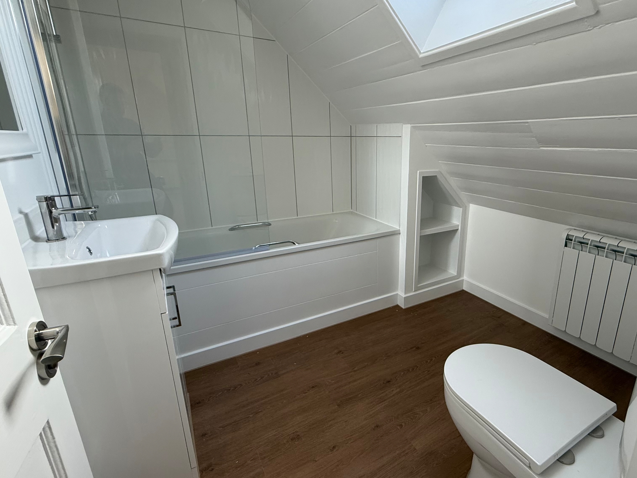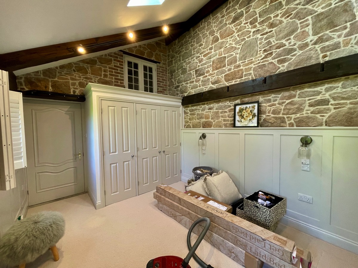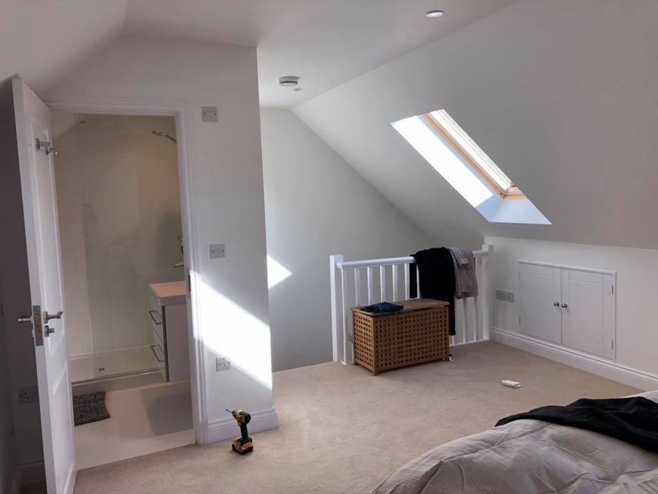 A challenging conversion from a trussed roof space into a master bedroom and en-suite bathroom.